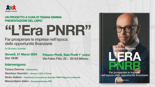 In un evento chiave per gli imprenditori, Giordano Guerrieri, (nella foto) CEO di Finera e autore, presenterà il suo nuovo libro “L’Era PNRR. Far prosperare le imprese nell’epoca delle opportunità finanziarie” presso la prestigiosa Sala Pirelli di Palazzo Pirelli, sede della Regione Lombardia. L’appuntamento è fissato per giovedì 21 marzo alle ore 18:00, in Via Fabio Filzi 22, Milano.