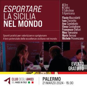 Il Club degli Amici del Made in Italy è lieto di invitare gli imprenditori italiani alla terza tappa del Tour, che si terrà a Palermo il 21 marzo con focus sulle eccellenze siciliane.