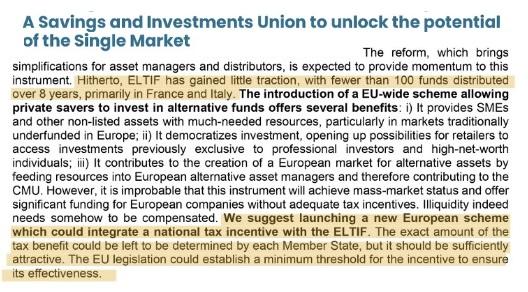 iii) Contribuisce alla creazione di un mercato europeo degli asset alternativi e contribuire all’UMC. Tuttavia, è improbabile che questo strumento raggiunga un mercato di massa, senza adeguati incentivi fiscali.