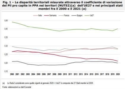 Francia, Germania e Spagna hanno conseguito una leggera riduzione del divario con le regioni più sviluppate d’Europa (vedi Fig. 1).