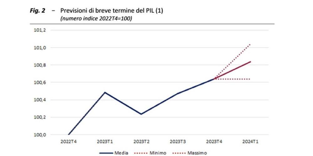 - Crescita primo trimestre 2024 stimata allo 0,2 per cento congiunturale con ampia “forchetta”