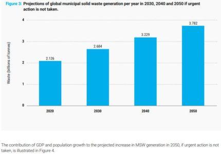 Se il mondo adottasse il terzo scenario, entro il 2050, un approccio di economia circolare potrebbe ridurre il volume dei rifiuti solidi urbani da oltre 4,5 miliardi di tonnellate all’anno a meno di 2 miliardi di tonnellate, rileva il rapporto. Lo stesso scenario sradica anche i rifiuti incontrollati – rifiuti che vengono scaricati o bruciati in fuochi aperti – e riduce i rifiuti in discarica di oltre il 40% a circa 630.000 tonnellate entro il 2050.