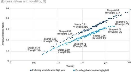 Fig. 1 L’inclusione dell’high yield di breve durata in un approccio diversificato di gestione della liquidità può aumentare l’efficienza