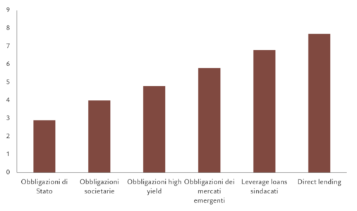 Fig.1 Rendimenti aggiustati per il rischio (risk-adjusted yield) e rettificati in base ai tassi di perdita a lungo termine, in %