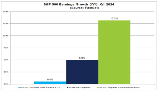 Tra le dinamiche più interessanti emerse dalla stagione degli utili evidenziamo il peso dell’inflazione sulle aziende maggiormente esposte al mercato domestico americano: le società con fatturato preponderante sul mercato americano registrano le stesse crescite di fatturato delle società più globali, ma hanno una crescita di utili praticamente pari a zero, rispetto ad una crescita utili del 13% di queste ultime.