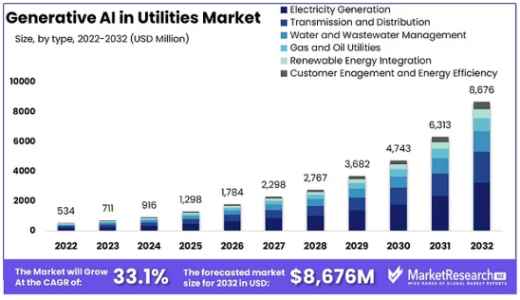 Allo stesso tempo, si prevede che il mercato delle utilities sperimenterà un’espansione ancora più significativa, passando da 534 milioni di dollari nel 2022 a ben 8.676 milioni di dollari entro il 2032, guidato da un notevole CAGR del 33,1% dal 2023 al 2032.