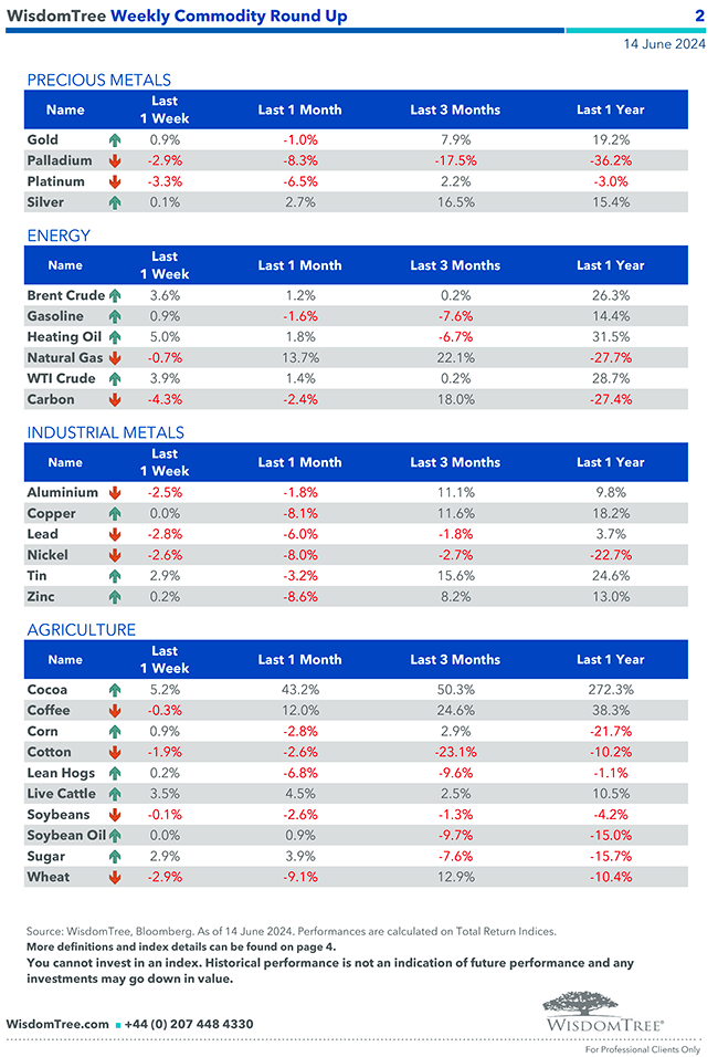 WisdomTree – Weekly “Commodity” Round Up – 14 giu 2024