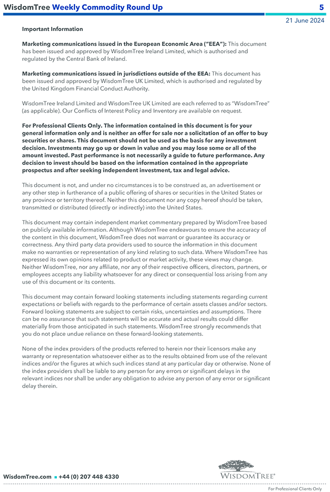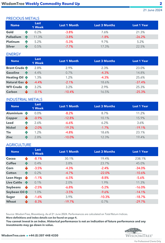 WisdomTree Weekly Commodity Round Up – 21 giugno 2024