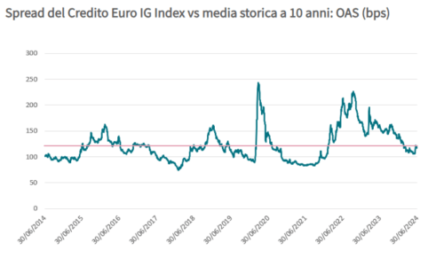 L’asset class ha performato molto bene nella prima metà del 2024 grazie alla crescita lenta ma positiva dell’Eurozona. Guardando al secondo semestre dell’anno, è ancora una buona idea essere investiti in obbligazioni corporate in un contesto dove gli spread del credito sono molto compressi?