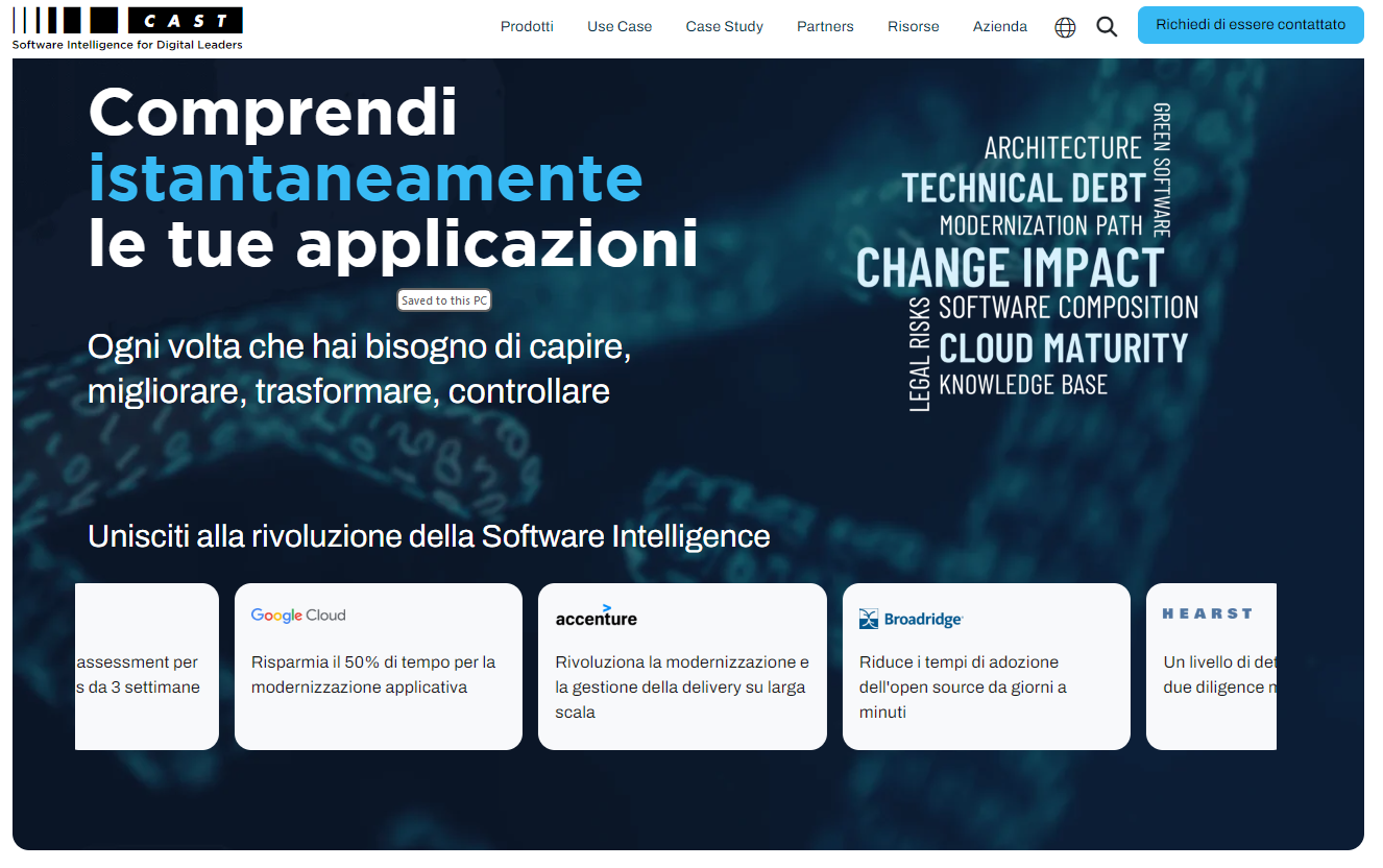 Per scoprire di più su come possiamo aiutarti, visita il nostro sito CAST Italia www.castsoftware.it