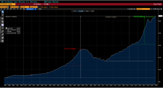 Per scoprirlo spostiamoci alla fine 2007. Pochissimi anni dopo l’euforia di internet, è arrivato l’entusiasmo immobiliare. Questa euforia ha colpito il cuore dell’investitore cioè la casa. Anche in questo caso le aspettative positive hanno alimentato l’avidità portando disequilibri. Questi disequilibri guidati e sorretti dall’aumento dei prezzi delle case (grafico di destra) hanno portato alla crisi del 2008. Crisi che ha colpito la fiducia degli investitori e insegnato molto alle Banche Centrali, soprattutto a reagire prima (vedere la forte e veloce reazione della FED nella pandemia del 2020).
