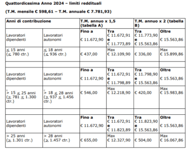 Come ricordato dall’Inps con messaggio del 25 giugno con la mensilità di luglio 2024 l’Istituto provvede a erogare la somma aggiuntiva, c.d. quattordicesima, se si perfeziona il requisito anagrafico nel primo semestre (entro i primi sette mesi per i pensionati privati) mentre sarà corrisposta a dicembre se si raggiungono i 64 anni nel secondo semestre del 2024, ovvero che sono divenuti titolari di pensione nel corso del 2024.