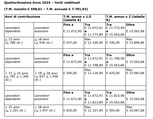 Per il diritto al beneficio viene preso in considerazione il reddito annuo del richiedente; tale reddito, in relazione agli anni di contribuzione, deve essere inferiore ai limiti indicati nella tabella riportata nel messaggio dell’Inps
