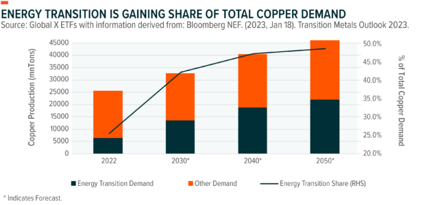 Il rame è stato a lungo associato a tendenze cicliche e macroeconomiche, con la domanda e i prezzi altamente correlati alla crescita economica globale. Tuttavia, il mondo sta cambiando e così anche le dinamiche della domanda e dell’offerta. Certamente, le tendenze cicliche e la crescita globale dovrebbero continuare ad avere un ruolo importante nella domanda di rame, ma la transizione energetica, l’elettrificazione di massa, l’urbanizzazione e l’ascesa dell’IA sembrano essere fattori strutturali in grado di sostenere la domanda a lungo termine. Questo cambiamento strutturale potrebbe ridurre la volatilità, soprattutto nei periodi di rallentamento della crescita economica.