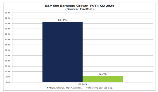 Partiamo dagli Stati Uniti, dove stiamo entrando nelle settimane in cui riporteranno la maggior parte delle aziende. Questa settimana avremo circa il 30% delle aziende. Per ora solo il 14% di queste ha riportato gli utili, con crescite del +9.7%. Questa crescita dovrebbe essere guidata dai magnifici sette che dovrebbero mostrare una crescita del +56% ma se escludiamo questi 7, la crescita del mercato dovrebbe essere del +5.7%. Le attese di crescita utili sono del +11% per il 2024 e +15% per il 2025.