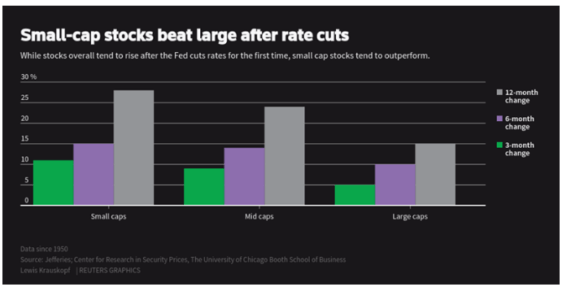 Curiosità storica: le small cap e mid cap sono le migliori performer dopo un taglio dei tassi d’interesse.