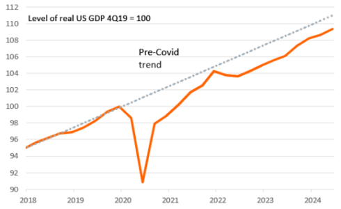 Il PIL reale degli Stati Uniti rispetto al trend pre-Covid