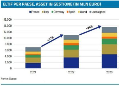 In particolare, in Italia, che con 3,3 miliardi in gestione è il secondo mercato europeo degli Eltif dopo la Francia, le risorse raccolte lo scorso anno sono ammontate a 760 milioni. A titolo di confronto i fondi di venture capital italiani, per definizione un comparto di nicchia, tra il 2013 e metà 2023 aveva raccolto 2,4 miliardi di euro di capitali dagli investitori (si veda qui l’inchiesta di copertina di BeBeez Magazine n. 21 del 25 maggio scorso).