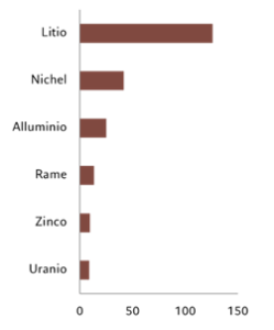 Crescita stimata della domanda di materie prime (variazione % 2023-2029)