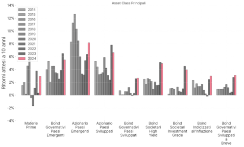 Guardando al lungo termine, è evidente che i livelli attuali delle cedole rendono il mercato obbligazionario governativo un’asset class da tenere in considerazione. L’ideale è dunque investirvi mantenendo questa prospettiva e adottando una strategia ben diversificata e bilanciata, consapevoli del fatto che non manchino rischi significativi sul fronte politico e geopolitico.