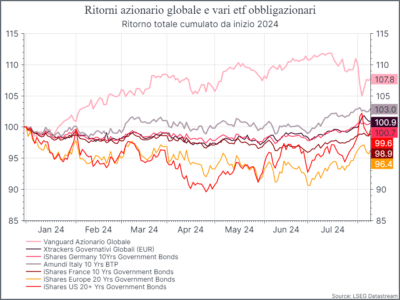 Il mese di agosto è iniziato all’insegna della volatilità, con i bond governativi che hanno parzialmente coperto le perdite registrate da asset rischiosi come l’azionario durante i momenti di maggiore tensione, ora fondamentalmente riassorbiti. Nel contesto di una strategia di investimento diversificata e di lungo termine, è evidente che i bond governativi abbiano riacquistato un ruolo di primo piano, nonostante nel primo semestre 2024 questa asset class abbia registrato rendimenti al di sotto delle attese. Almeno fino al rally di inizio agosto, quando le attese per il numero di tagli dei tassi da parte della Federal Reserve prezzati per il 2024 è passato dai sette di inizio anno agli attuali quattro.