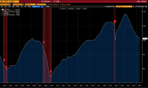 I principali dati macroeconomici stanno deludendo le attese. Questo è evidenziato sia dai vari indici di sorpresa economica, CESI, sia dal LEI index che è rientrato ai valori del 2016.