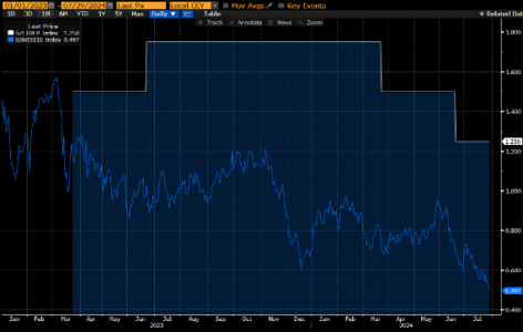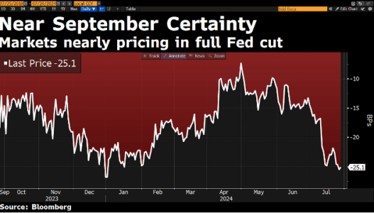 La FED (ed anche la BCE) potrebbero essere costrette a tagliare i tassi in risposta a un rallentamento economico, con implicazioni significative per i mercati finanziari globali. Il mercato attende oggi un primo taglio di 25 punti base a settembre, ma c’è già chi inizia a pensare che il taglio potrebbe essere anche di 50 punti base.