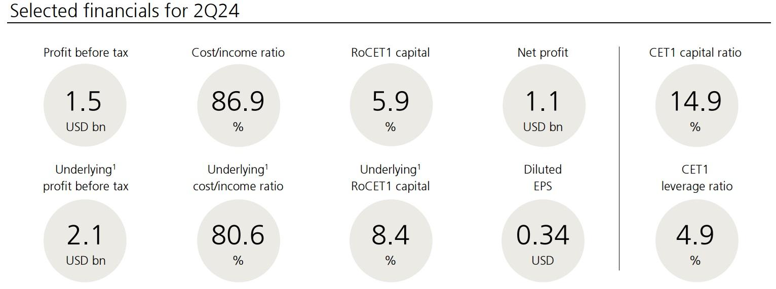 UBS riporta un utile netto di 1,1 miliardi di USD nel secondo trimestre 2024