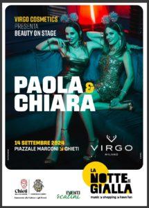 Il gran finale dell’estate sarà il 14 settembre, in occasione della Notte Gialla di Chieti. Durante questa magica serata, Virgo Cosmetics porterà in piazza il concerto di Paola e Chiara, due icone della musica pop italiana, pronte a far ballare il pubblico con i loro successi più amati.