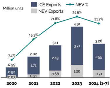 Fig. 2 Esportazioni di veicoli cinesi a motore a combustione
