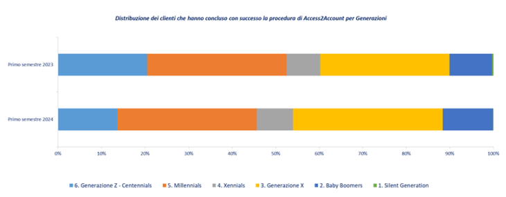 Gli italiani guardano con maggior fiducia all’Open Banking e questo è testimoniato anche dallo spostamento verso generazioni meno giovani, con un incremento della quota di utenti appartenenti alla Generazione X e ai Baby Boomers, rispettivamente del +4,8 e +6,5 punti percentuali nel primo semestre di quest’anno.