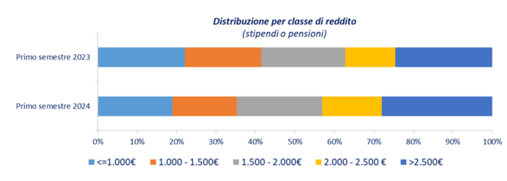 A un aumento della popolazione più anziana corrisponde una crescita nella distribuzione delle classi di reddito più alte e una diminuzione dell’incidenza di coloro che hanno un reddito mensile medio inferiore ai 1000 euro.