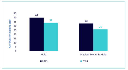 Figura 2: Sondaggio tra gli investitori: % di investitori che detengono oro e metalli preziosi