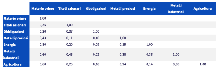 Tuttavia, date le numerose incertezze che ci attendono, un portafoglio ampio e differenziato di materie prime può contribuire a diversificare il rischio. Le commodity hanno una bassa correlazione con altri asset e, di fatto, tra loro, per cui un paniere ampio è molto interessante.