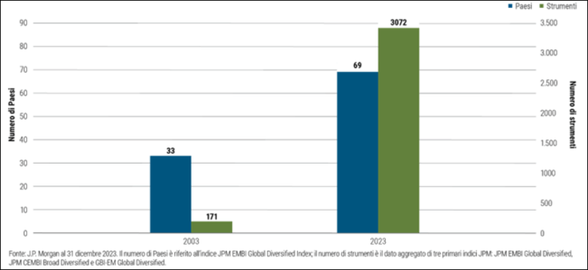 Figura 1 – Nei mercati emergenti la crescita del numero di strumenti investibili ha superato quella dei Paesi investibili