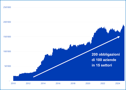 Volume in circolazione in milioni di USD (ICE BofA Global Hybrid Non-Financial Corporate Index (GNEC) + ICE BofA Global Hybrid Non-Financial High Yield Index (HNEC) + 2024 USD Non-Fin Jun Sub Issuance). Fonte: Bloomberg Finance / ICE BofA / Elaborazioni ZKB