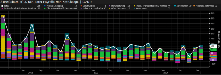 Negli Stati Uniti in particolare abbiamo avuto un ISM sui servizi che è stato il più elevato dal Settembre 2023, con anche il mercato del lavoro che rimane molto resiliente con sussidi di disoccupazione inferiori alle aspettative ed il dato più atteso della settimana che ha visto buste paga per il settore non agricolo uscite molto al di sopra delle aspettative a 256K rispetto alle 165K attese, con anche un tasso di disoccupazione migliore delle attese al 4.1%.