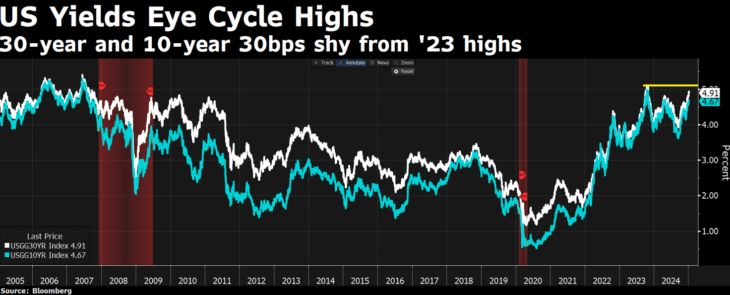 Siamo oggi tornati ad un livello di tassi molto simile a quello che ha caratterizzato il mondo degli investimenti pre-crisi finanziaria del 2008 e questo non è una cosa negativa in un contesto economico di crescita, anzi non è casuale che i mercati azionari hanno continuato a salire nonostante la risalita dei tassi, ma nel breve termine una ulteriore risalita dei tassi decennali americani al di sopra del 5% potrebbero rappresentare un temporaneo campanello d’allarme per il mondo azionario. Non pensiamo che i tassi andranno molto oltre i livelli attuali: Il fatto che i tassi di mercato siano saliti da settembre ad oggi, nonostante i tagli della FED, non rappresenta un allentamento monetario ma un irrigidimento. Il punto è che le condizioni attuali per l’economia reali sono più restrittive rispetto a settembre ed è per questo che la FED continuerà il percorso di tagli dei tassi anche nel 2025 così come confermato dalle ultime minute di dicembre e probabilmente effettuerà un numero di tagli superiore all’unico taglio oggi atteso dal mercato.