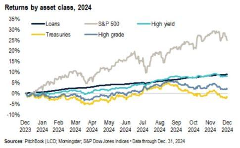 • Nonostante tre tagli dei tassi (l’ultimo il 18 dicembre, dopo che il mercato aveva praticamente chiuso per l’anno) e un’enorme ondata di rivalutazione, i prestiti hanno guadagnato il 9,4% solo grazie al taglio delle cedole nel 2024.