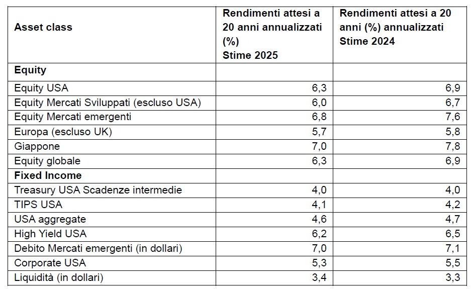 Aspettative di rendimento delle asset class