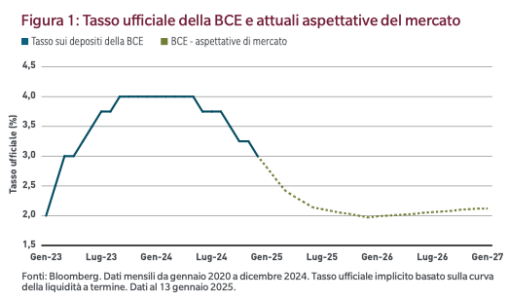 Nei portafogli multi-asset, è necessario ridurre il rischio. Riteniamo che i mercati globali possano trovarsi davanti a un bivio in un contesto in cui l’incertezza sulle misure politiche e la volatilità macro sono destinate ad aumentare, soprattutto con l’inizio del secondo mandato Trump. Su tale premessa, appare sensato prevedere una riduzione del rischio all’interno dei portafogli multi-asset, anche mediante una maggiore allocazione nelle obbligazioni. Nel complesso, riteniamo che i titoli obbligazionari costituiscano attualmente un’asset class interessante ai fini della riduzione del rischio, in quanto i rendimenti complessivi scambiano su livelli storicamente elevati. Sul versante azionario, benché il contesto di mercato rimanga generalmente favorevole agli asset rischiosi, cresce la preoccupazione intorno alle attuali valutazioni di mercato e alle implicazioni per i rendimenti azionari attesi a lungo termine.