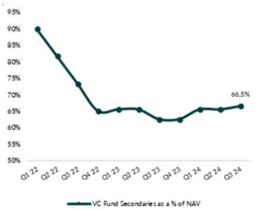 Source: (1) Pitchbook Q4 24 NVCA report, data as of Q1 2024, (2) PJT Secondaries Report, Q3 2024