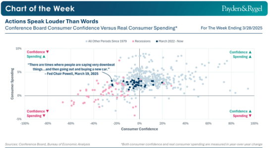 Il report Personal Income and Outlays di febbraio, anch’esso pubblicato la scorsa settimana, lo confermerebbe: la spesa reale dei consumatori è aumentata del 2,7% rispetto a un anno fa, nonostante un calo del 10% della fiducia dall’inizio dell’anno. Come dice il proverbio, i fatti contano più delle parole, quindi, anche quando si valuta il rischio di recessione, è più importante osservare ciò che il consumatore fa, piuttosto che basarsi su ciò che dice.