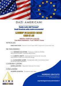 Dazi Americani. A Varese oggi alle 17.45 si discute con gli esperti di AIME. Ingresso gratuito