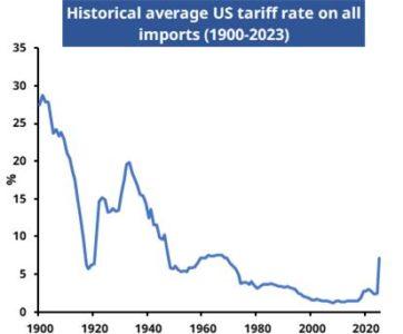 Stime preliminari suggeriscono che, con le misure attuali, il tasso medio dei dazi statunitensi potrebbe salire a circa il 20% (livelli del 1930), aumentando il rischio di stagflazione.