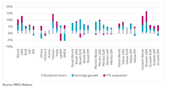 Commento Robeco: Scomporre i rendimenti azionari – Crescita degli utili versus espansione dei multipli