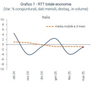- RTT a marzo registra un calo in quasi tutte le aree geografiche, tranne il Centro (+1,8%); la maggiore flessione si ha di nuovo al Nord-Ovest.