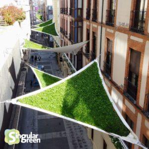 “Nelle città, dove il caldo è un serio problema, Green Shades è una soluzione ottimale per vie commerciali, terrazze e piazze. La composizione e le specie vegetali sono ottime per l’assorbimento del NOX e del CO2, contribuendo al miglioramento della qualità dell’aria delle nostre città. La leggerezza e la facilità di istallazione ne consentono la collocazione in strade dove, per mancanza di spazio o difficoltà di intervento, non è possibile collocare alberi o altri tipi di vegetazione”, leggiamo sul report Green Shades di Singular Green.