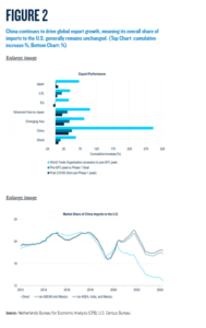 Il significativo surplus commerciale della Cina nei confronti degli Stati Uniti, in particolare la composizione di tale surplus, e il suo ruolo preponderante nelle catene del valore manifatturiere globali hanno posto il Paese al centro delle iniziative statunitensi sui dazi.