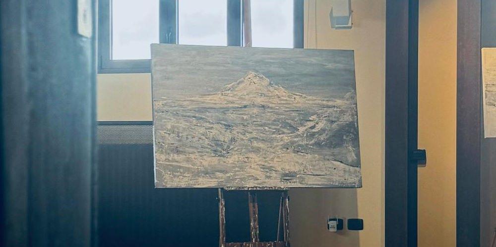 Tra le opere d’arte, mi soffermo in particolare su “Un lungo viaggio”, una montagna imponente e concreta. Non solo simbolo paesaggistico, ma presenza viva, materica e realistica. Rassicurante nella sua forza, eppure capace di smuovere. Ed è proprio in questo che risiede la forza terapeutica dell’arte.